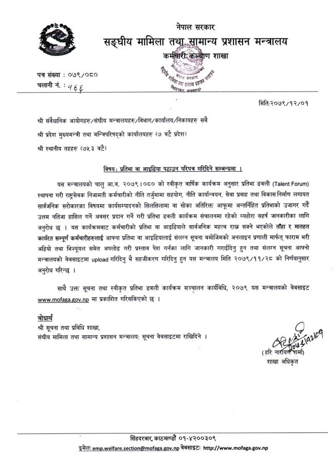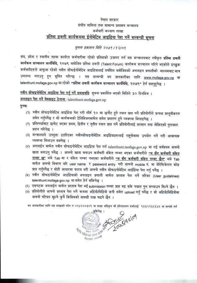 » प्रतिभा डवली कार्यक्रममा इनोभेटिभ आईडिया पेश गर्ने सम्बन्धी सूचना ।