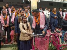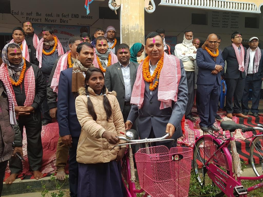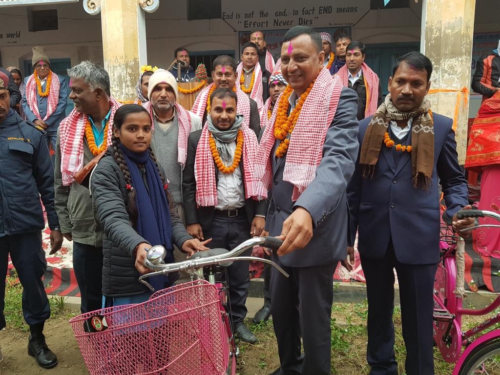 "बेटी पढाउँ, बेटी बचाउँ कार्यक्रम" अन्तर्गत कक्षा ७ र ८ मा अध्ययनरत छात्राहरुलाई साइकल वितरण कार्यक्रम सम्पन्न ।